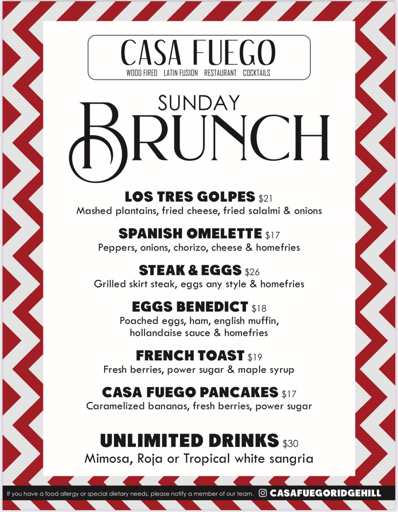 INTRODUCING SUNDAY BRUNCH at Casa Fuego! . . . . . . . #Delicioso #westchestereats #westchestereatsny #fuego #tacos #burgers #yonkers #yonkerseats #shopridgehill #salsa #latinfoodwestchester #latinfood #latinofood #latinfoodporn #spanishfood #latincuisine #woodfired #foodie #foodporn #casafuego #ridgehill #ridgehillmall #yonkers #yonkersny #drinks #mojito #pinacolada #food #pescado #blackbeansButton