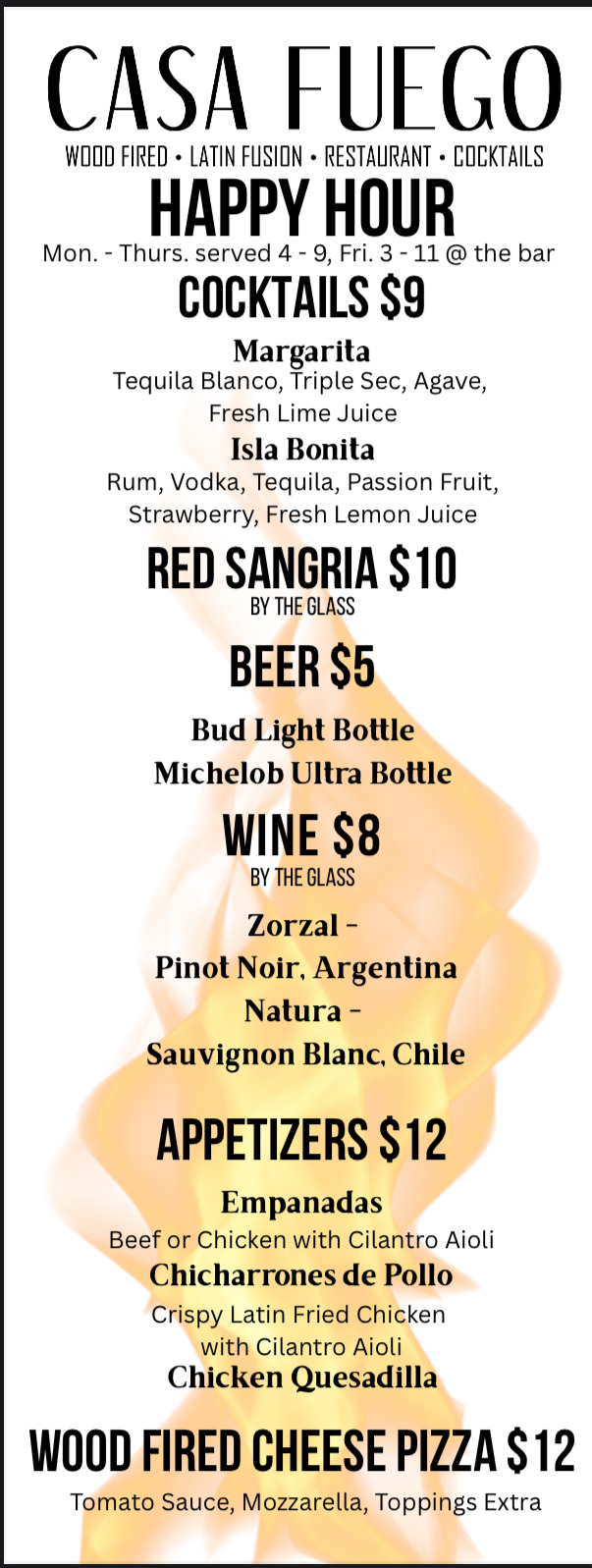 Casa Fuego, Wood Fired Latin Restaurant & Cocktails is Westchester's new go to for Latin cuisine, we're serving up delicious South American culinary classics and some with a modern twist, stop in for dinner and our mind-blowing drinks or order from our website. Open 7 nights a week!